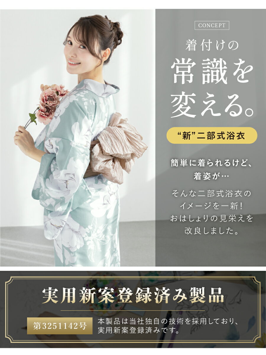 巻きスカートに浴衣型の上着を羽織ることで浴衣に見える二部式の浴衣です。