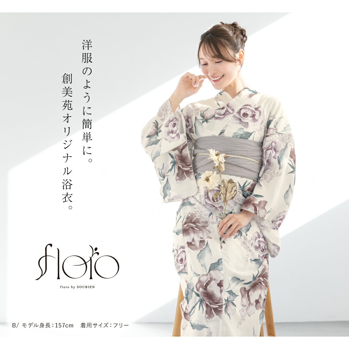 SOUBIENのプライベートブランド『floro by SOUBIEN』(フローロ)の浴衣を合わせた華やかな浴衣セットです。
