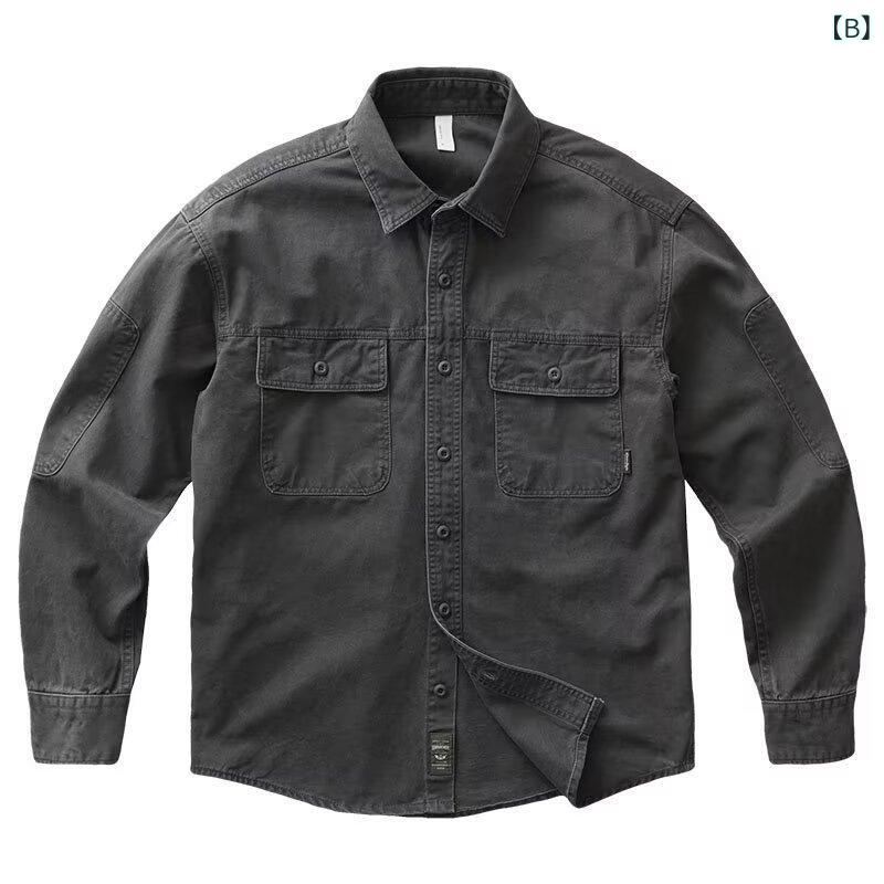 シャツ メンズ 男性用 長袖 春秋 ワークシャツ ゆったり カジュアル 水洗い加工 古着風