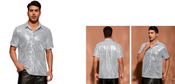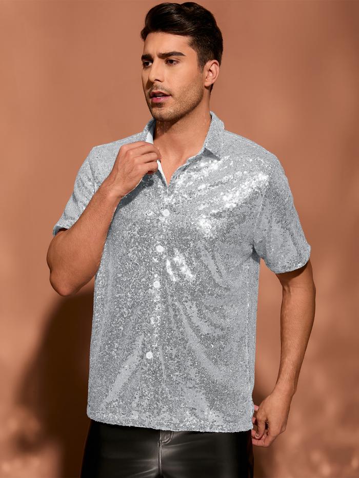 ボタンダウンシャツのグリッタースタイルを備えたスパンコールシャツは、ディスコパーティー、ナイトクラブ、プロム向けにデザインされています。