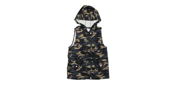 【商品説明】この迷彩ベストは、ドローストリングのネクタイウエストとフード付きのデザインが特徴で、カジュアルで日常着に快適です。