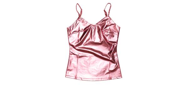 ノースリーブのデザインにカットされたこのアイテムは、メタリックデザインされております。