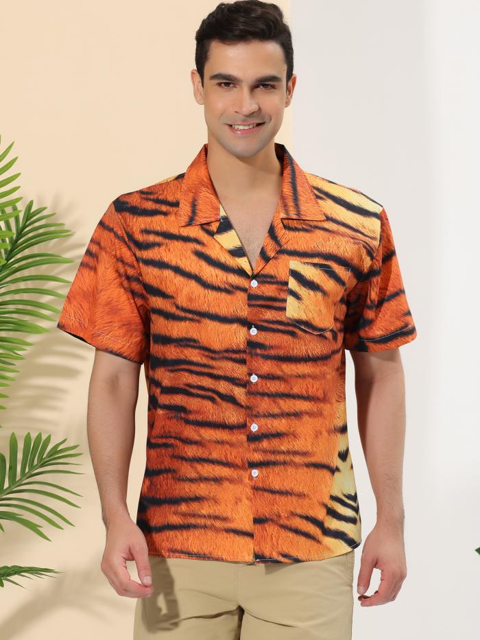 シーン:カジュアル、ホリデーレジャー、旅行、ビーチパーティー、ステージパフォーマンス、日常着に適したアニマルプリントシャツは、スタイリッシュで魅力的です。