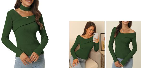 【属性4】大胆なチョーカーネックラインを備えた V ネックのスリムフィット セーター トップで個性を主張しましょう。