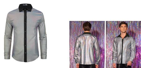 メタリックなパーティー シャツをレザー パンツ、スパンコール ブレザー、シルク ネクタイと合わせて、夜の外出、ステージ、コンサート、その他の機会に着用できます。