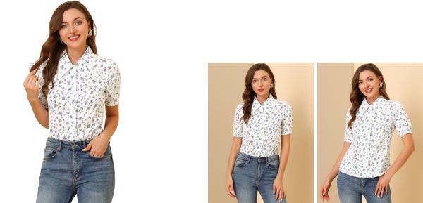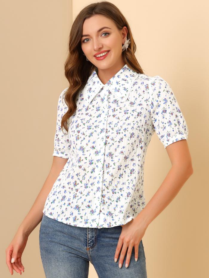 ?ブルーの花柄とボタンフロントのデザインが特徴のこのシャツは、新鮮な夏の気分をもたらします。