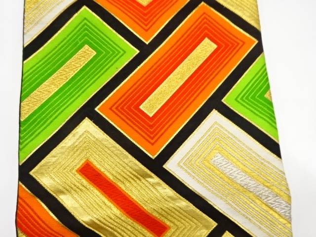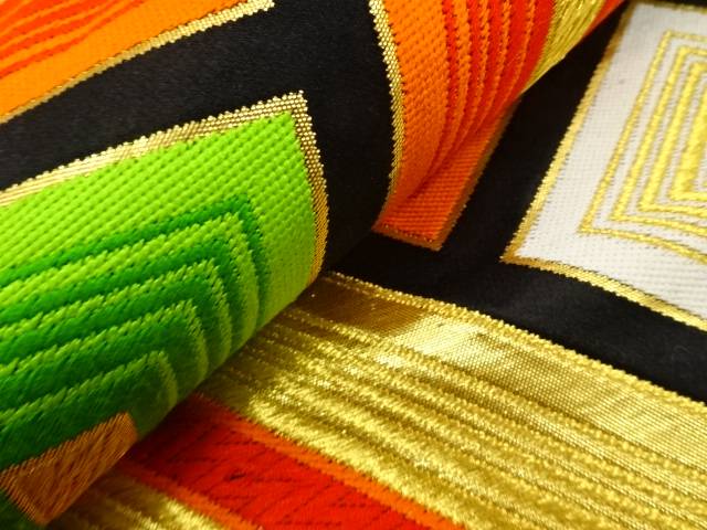 <帯サイズ>(単位:cm) 長さ 408 幅 30 状態 非常によい 素材 正絹 色目 黒 【商品説明】 帯幅部分折れ山線に薄くすみが有ります。 その他、多少の薄アクがあります。 状態は大変良いです。 着用可能です。【茶道具・茶道・着物】檜垣模様織出し袋帯(着用可)【アンティーク】【中古】【着】 宗sou