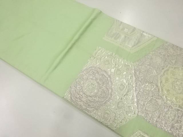 <帯サイズ>(単位:cm) 長さ 424 幅 30 状態 非常によい 素材 正絹 色目 薄緑・薄紫