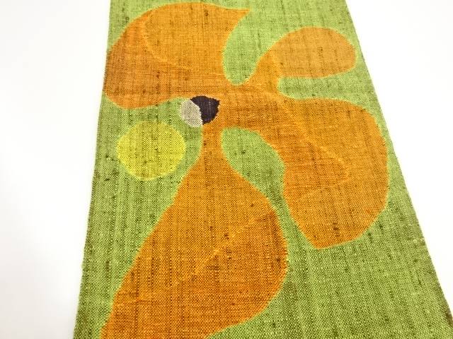 <名古屋帯サイズ>(単位:cm) 太鼓部分長さ 111.5 太鼓部分幅 30 前部分長さ 263 前部分幅 15 時代 現代(1989 - ) 状態 非常によい 素材 正絹 色目 若草・茶 技法 手織り 【商品説明】 状態は大変良いです。 着用可能です。【茶道具・茶道・着物】手織り真綿紬抽象花模様織出し名古屋帯【中古】【着】【名古屋帯】 宗sou