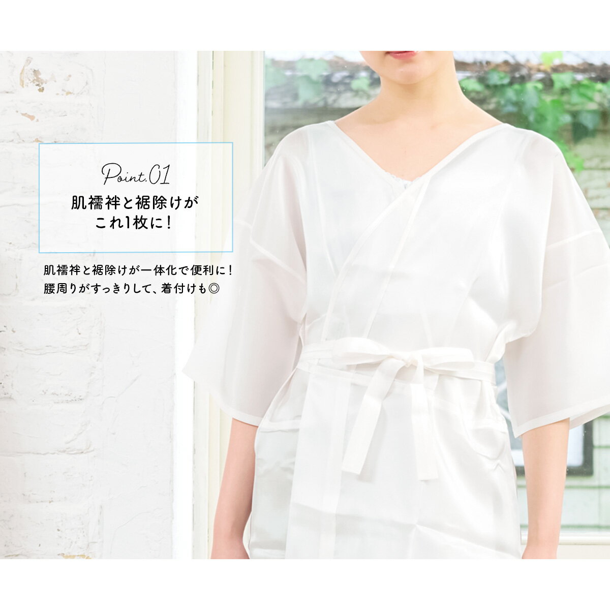着付けの際に最初に着る肌襦袢と裾除けを合わせて一枚にしたワンピースタイプの肌着です。