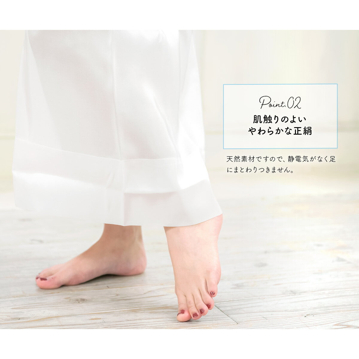 天然素材ですので、静電気がなく足にまとわりつきません。