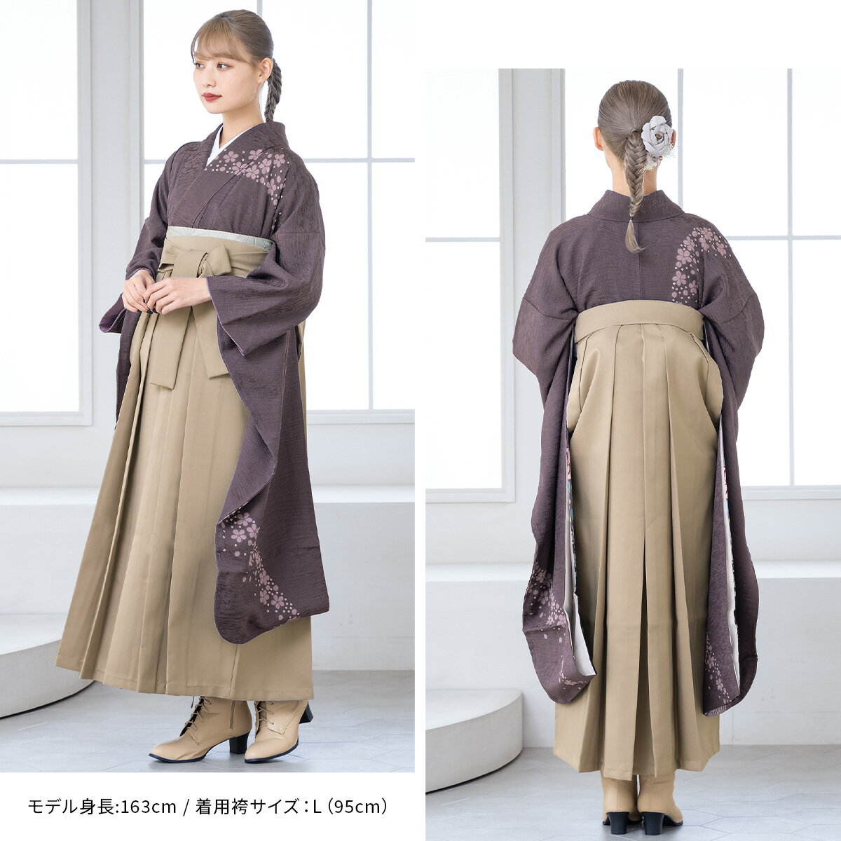 商品詳細商品番号ren-hms0815色着物 灰がかった紫袴 ベージュ素材着物・袴:ポリエステル100%内容着物・袴・下帯・前板・襦袢(半衿付)・衿芯・伊達締め×2・腰紐×4・着付けベルト・草履・足袋(プレゼント)商品について草履は着物の色に合わせてお届けします。