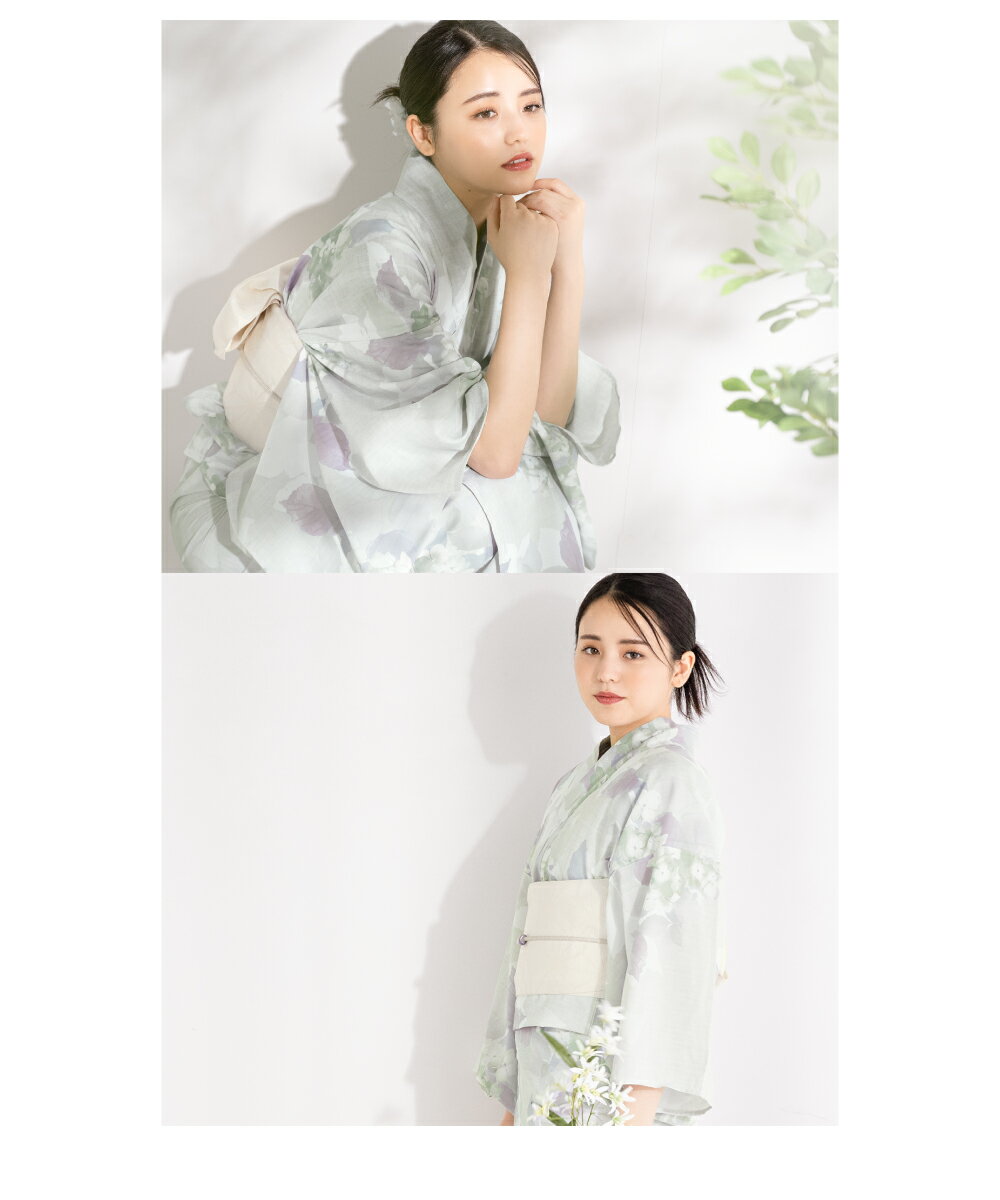 商品詳細商品番号ren-yus0306色浴衣 くすみのライトグリーン系に紫帯 ホワイト系素材浴衣 ポリエステル100%帯 ポリエステル100%内容浴衣・帯・下駄・腰紐2本商品について下駄は浴衣に合わせてお届けします。