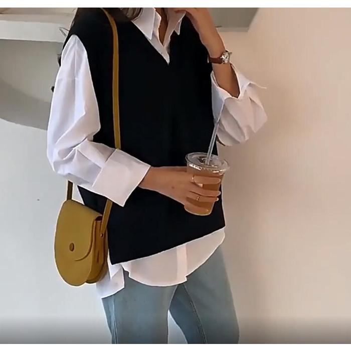 商品名:ニットベスト カラー:写真参考 素材:ポリエステル サイズ(cm): F 着丈(前/後)57/62 バスト104 肩幅45