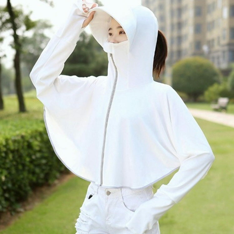 すぐ乾くから夏にぴったり!・顔・手までしっかりUV対策ファスナーを上まで閉じれば顔までしっかりガード。
