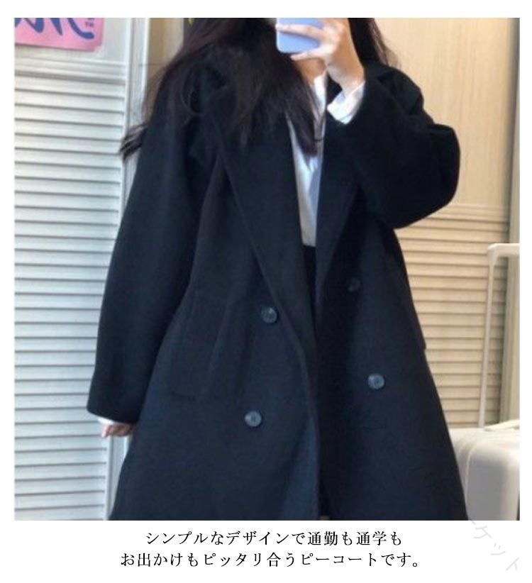シンプルなデザインで通勤も通学もお出かけもピッタリ合うピーコートです。