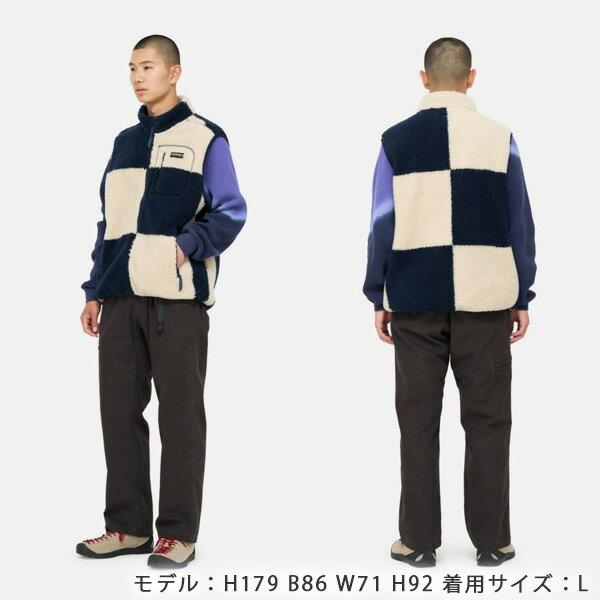 10時までのご注文で当日発送!(水曜定休・正月,お盆,GW,予約品は除く) CHECKERED SHERPA VEST チェッカード シェルパベスト 品番:G4FU-J021 羊のようにモコモコした、暖かくボリューム感のある、オリジナルチェッカージャガードのボアベストです。