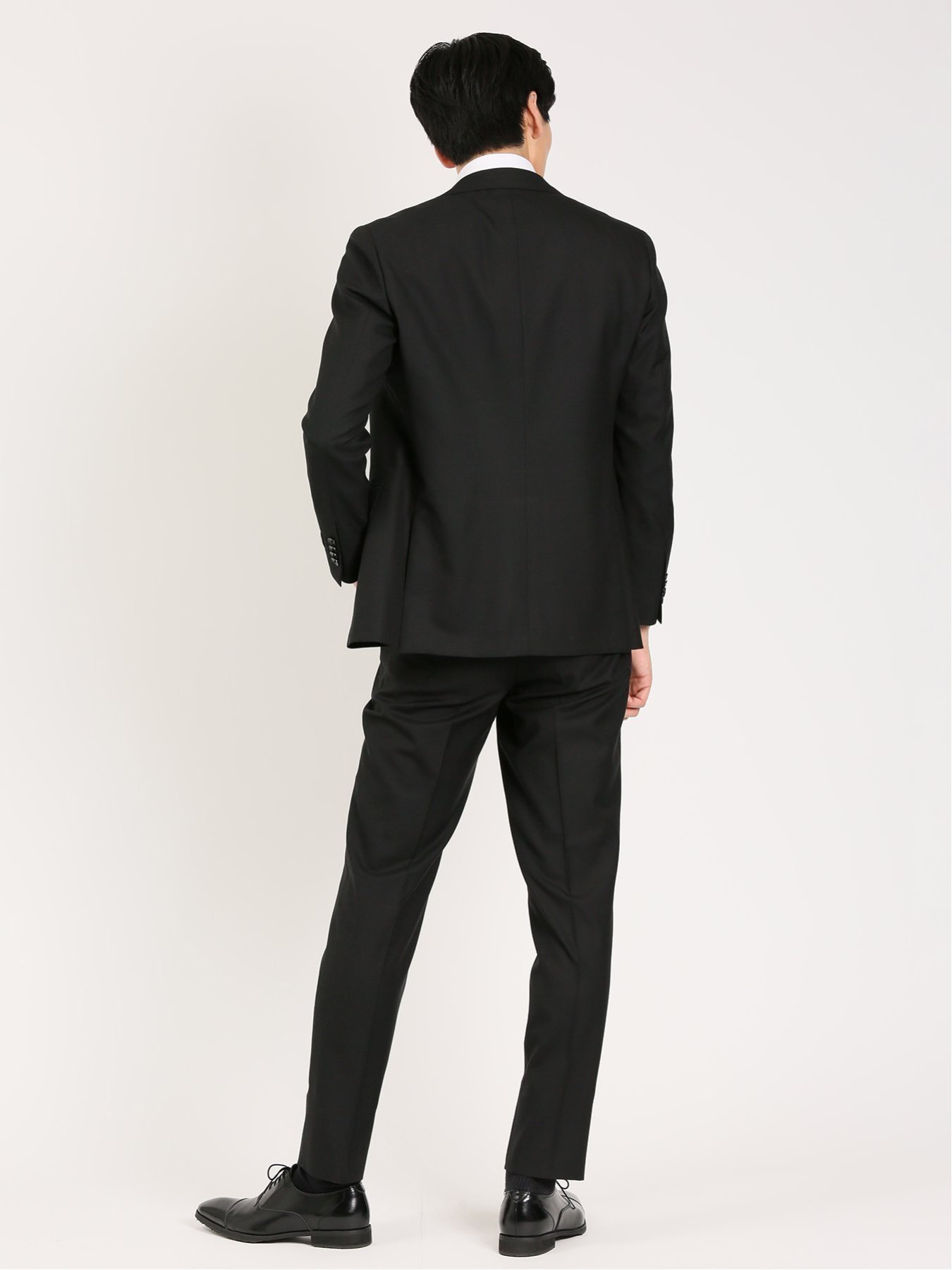 SUPER100'S(原毛の細さが18.5マイクロン)のウール原毛を使用したシンプルな黒です。
