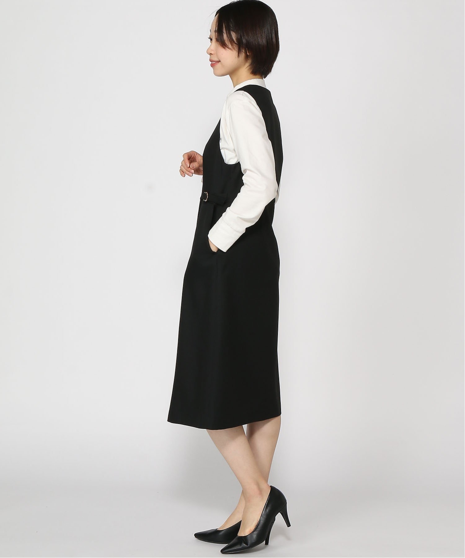 Doubleface tokyo(ダブルフェーストーキョー)ワンピース:Vネックジャンスカワンピースワンカラーながらシンプルにまとまりすぎない、大人のためのジャンスカワンピース。