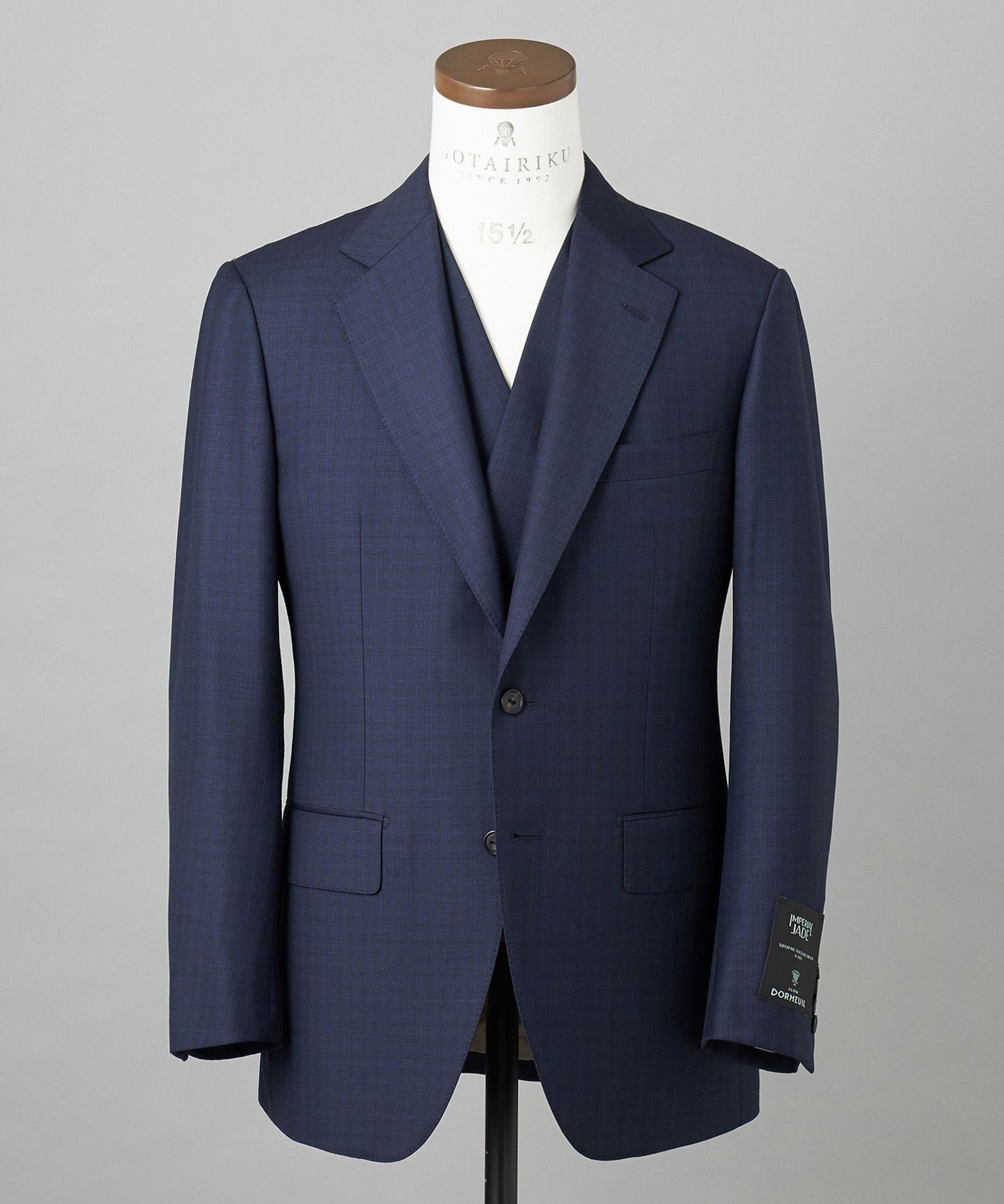 【DORMEUIL/ドーメル】IMPERIALJADE/インペリアルジェイド 通年 3ピーススーツ(ネイビー*格子)