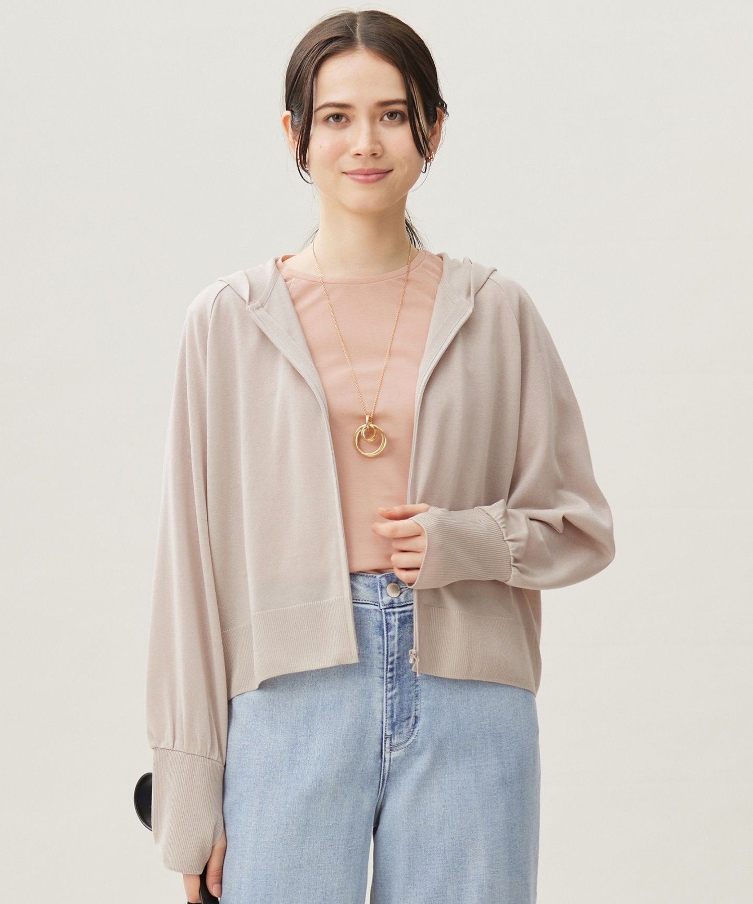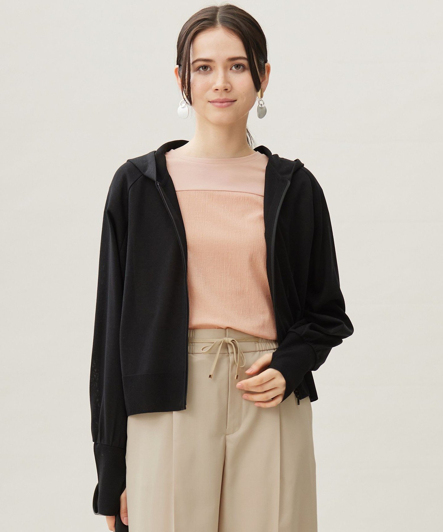 【接触冷感・UVケア・洗える】ファンクショナルジップアップ パーカーフェミニンなデザインのジップアップパーカー