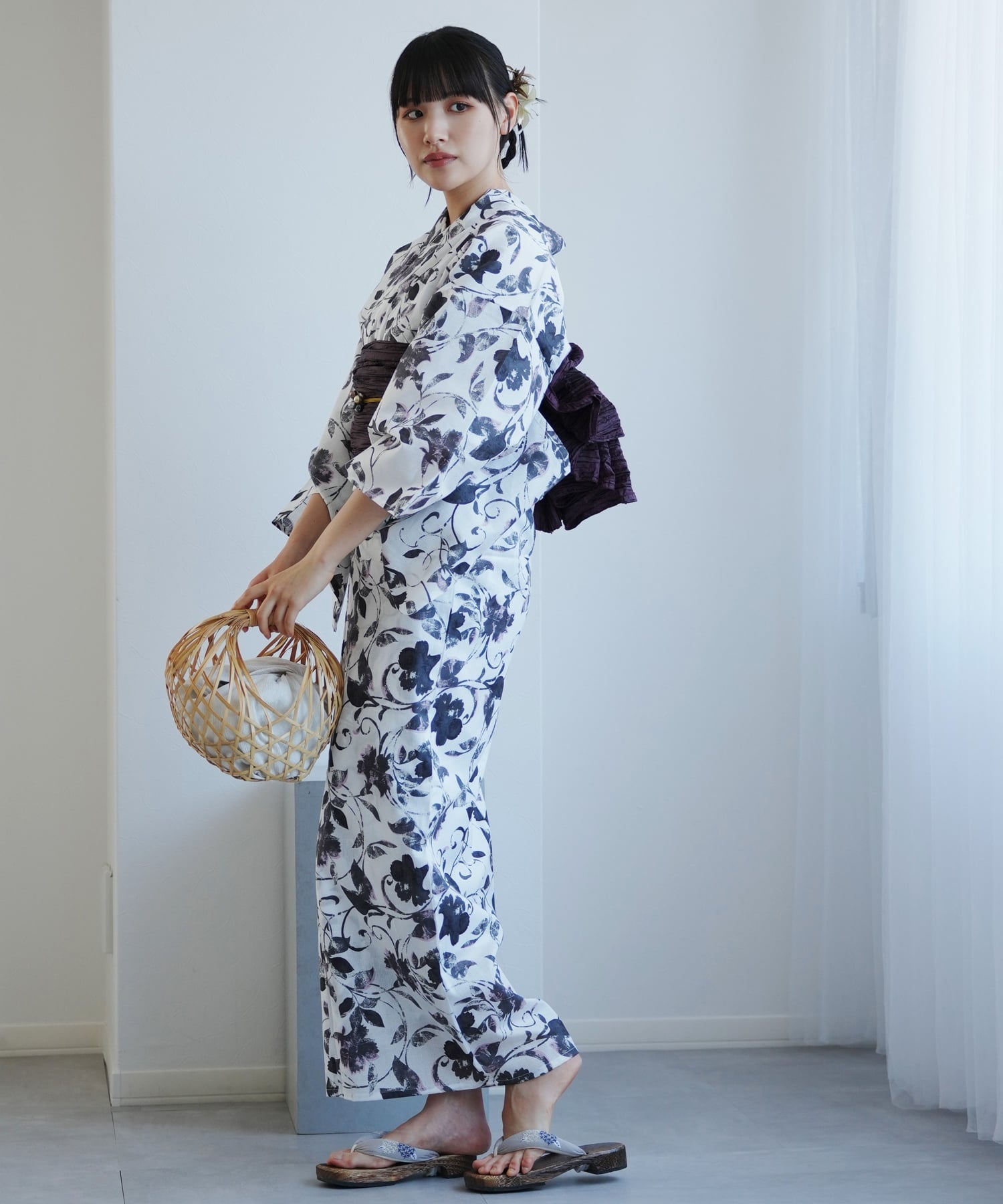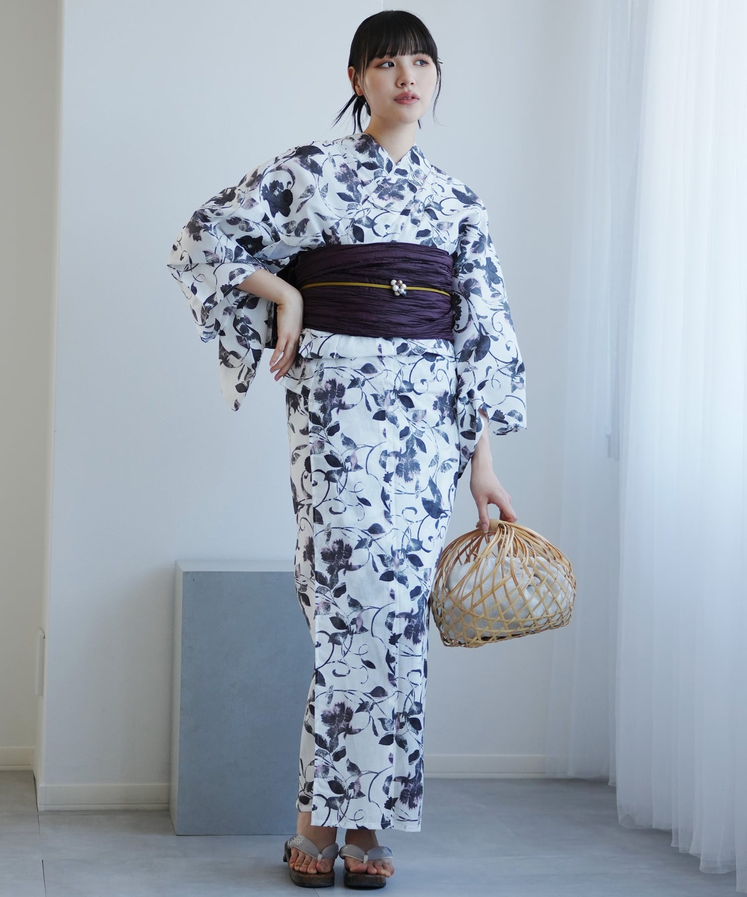 utatane(ウタタネ)浴衣2点セット 白地に墨色の唐草小花
