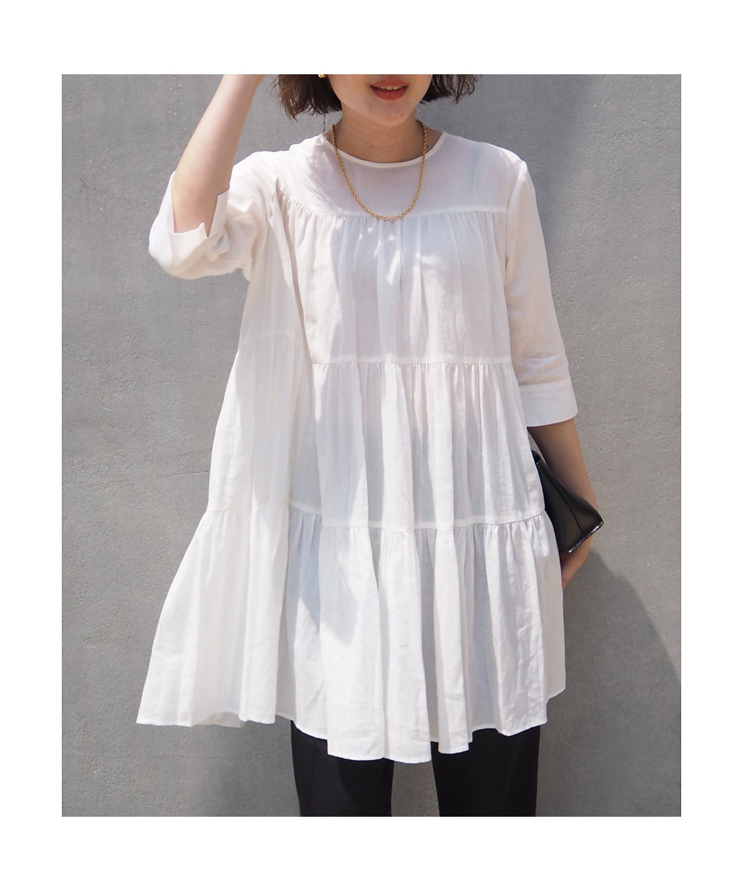 商品のカラーについてqualite(カリテ)ティアードチュニック*Detail*柔らかなコットン素材を使用した、ティアードデザインのチュニック。