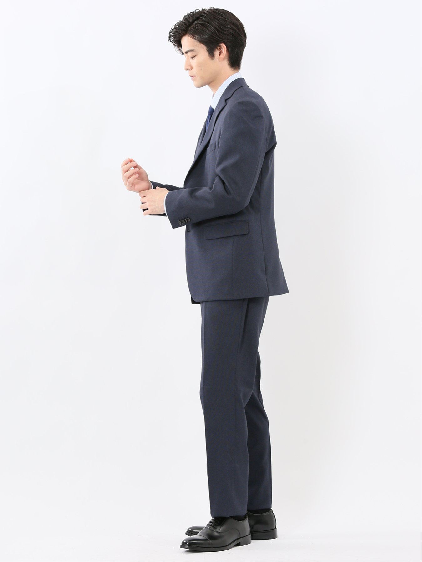 フィット感:標準モデル:001:レギュラーシーズン:秋冬展開カラー:紺(ネイビー)裏地:総裏仕様*アテンションタグ・洗濯ネームを御確認の上、着用又は取り扱い下さい。