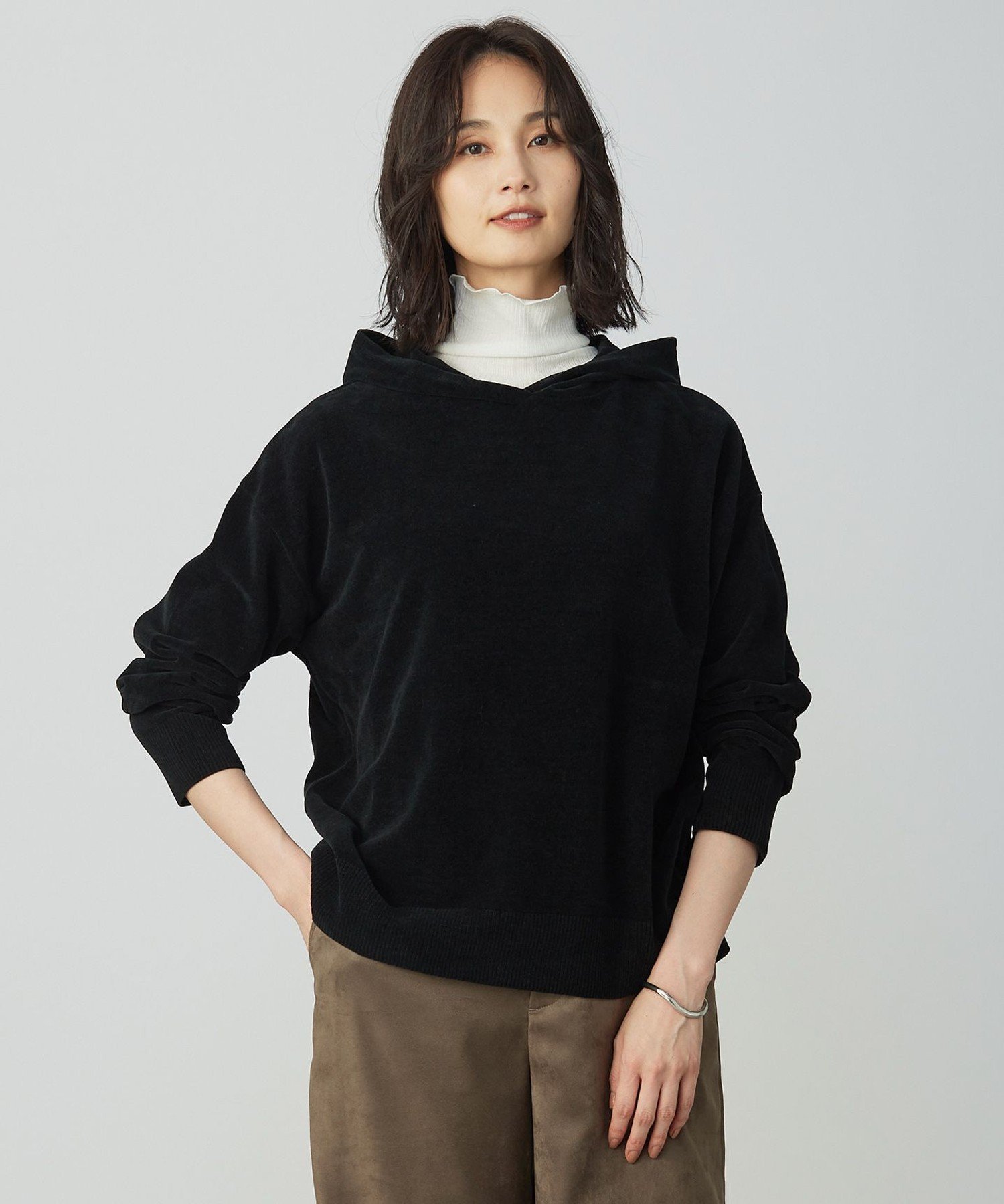 やわらかなニットの風合いが心地よいフーデッドニット