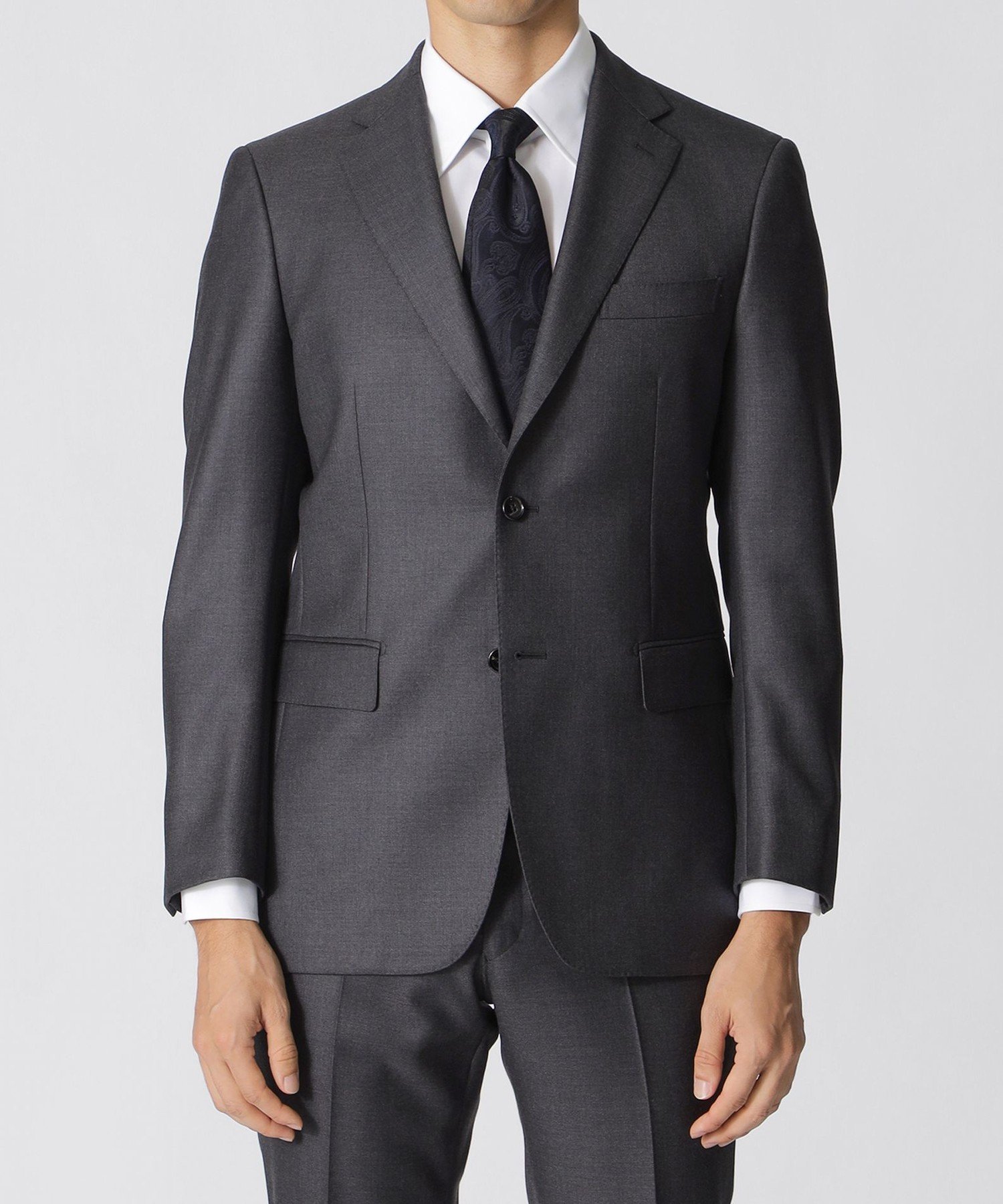 【商品詳細】日本製素材:表地 毛100% (表地スーパー120's使用) 裏地 キュプラ 組下 表地 毛100% (表地スーパー120's使用) 裏地 キュプラサイズ:44L、46L、48L、50L