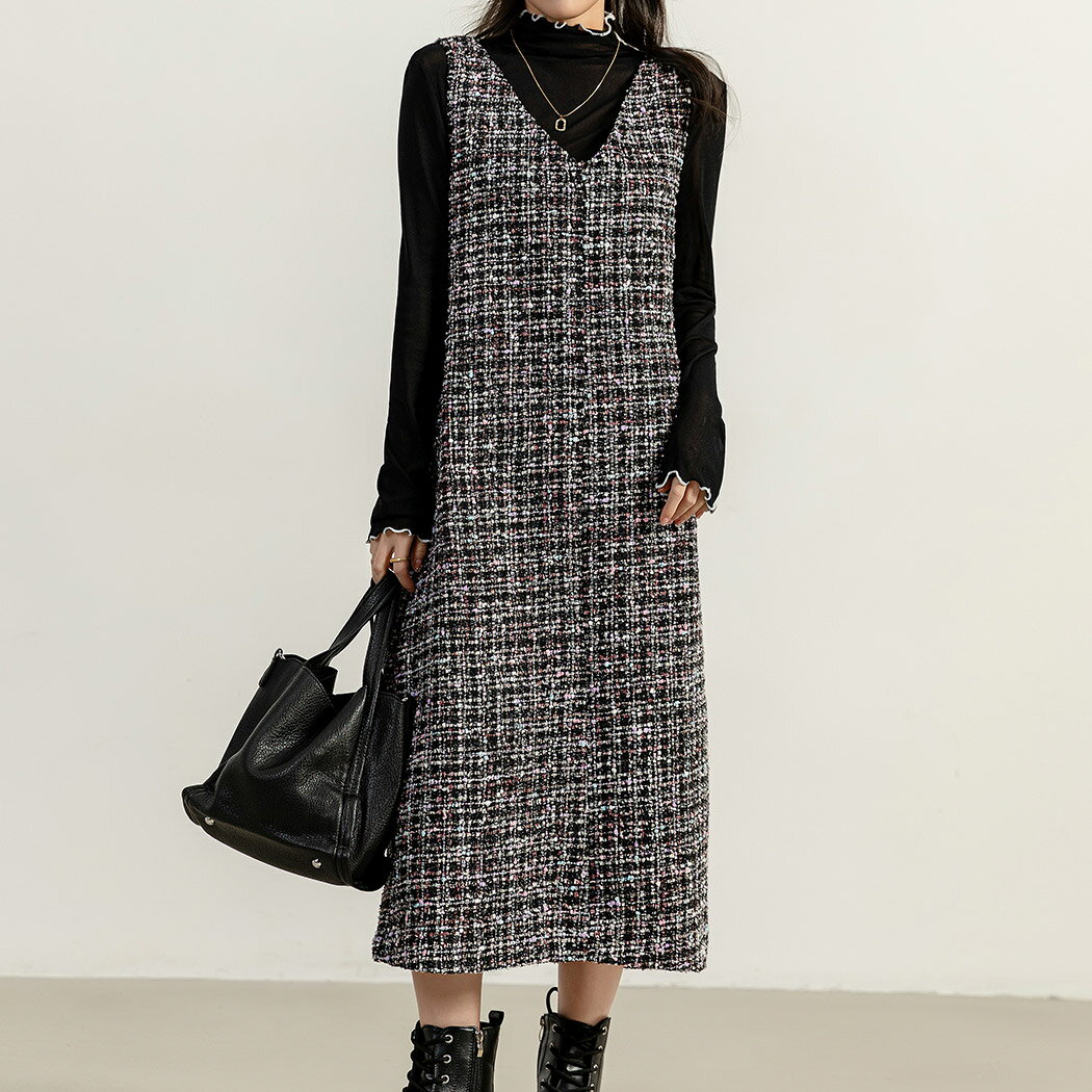 ■セット内容・1点・ワンピース「レディに決まる」ジャンパースカートJUMPER SKIRTFREESIZE大人っぽくレディな印象に決まるツイード風ワンピースすとんとしたIラインシルエットで大人綺麗な雰囲気に。