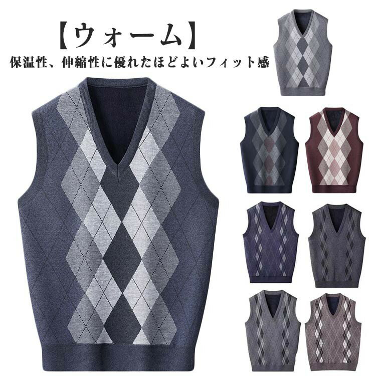 【スタイル】保温性、保湿性抜群のVネックセーターベスト。