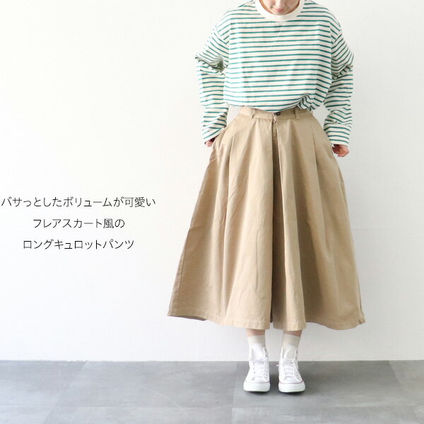 バサっとしたボリュームが可愛い フレアスカート風のロングキュロットパンツ 後ろ下がりなロングフレア、大胆なワイドシルエット。