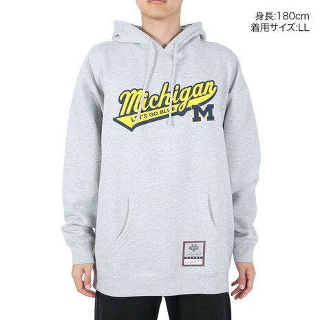 【当社実寸サイズ(cm)】着丈肩幅身幅袖丈Mサイズ詳細71565963Lサイズ詳細72616364LLサイズ詳細74646764●ミシガン大学のスクールカラーであるネイビーとイエローを使用したカレッジロゴが存在感を放つフーディー。