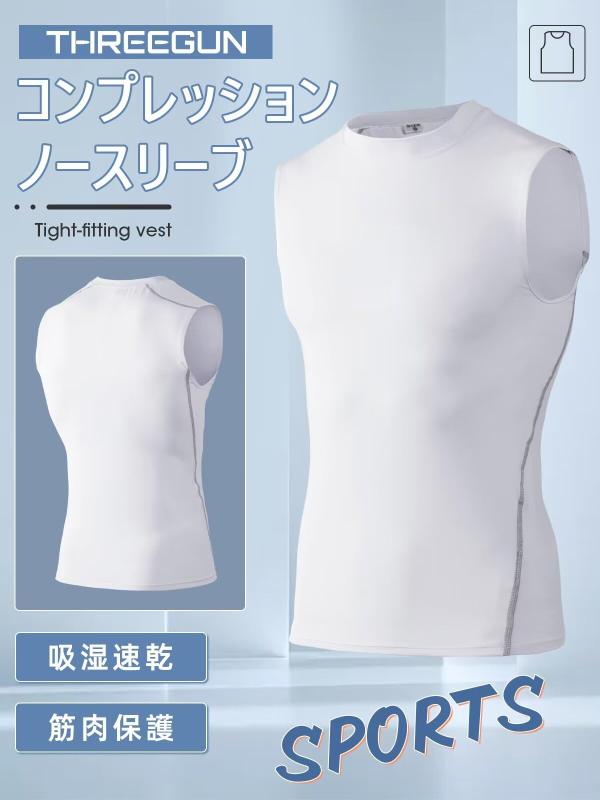 [THREEGUN] ノースリーブ コンプレッション メンズ タンクトップ 筋トレ 加圧インナー トレーニングウェア ジムウェア スポーツ 吸汗速乾 ストレッチ 夏(ホワイト3XL)