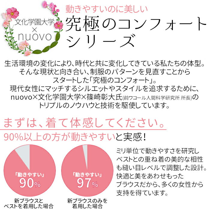 nuovo×文化学園大学×篠崎彰大氏(前ワコール人間科学研究所 所長)のトリプルコラボにより、パターンの原型から見直すことで、現代女性に合うシルエットと快適な着心地を実現した「究極のコンフォートスタイル」シリーズ。