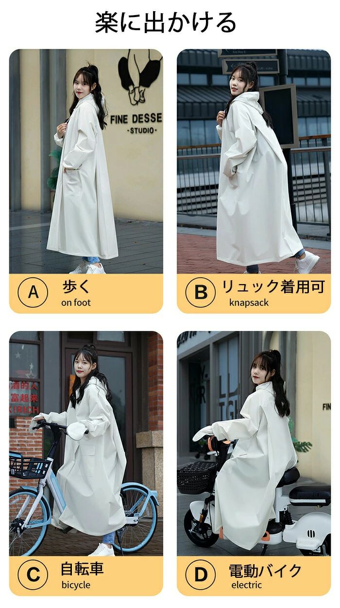 レインコート 自転車 リュック対応 ロング丈 レディース メンズ おしゃれ かわいい マスク 透明窓 防水手袋 ポンチョ レインポンチョ バイク レインウェア 二重ツバ バイク 軽量 雨具 自転車 通学 防水 撥水 雨対策 通学 通勤 プレゼント商品仕様商品名:レインコートカラー:ブラック、ブルー、ピンク、ホワイトセット内容:レインコート+収納袋サイズ:XL/XXL/XXXL素材:EVA生産国:中国