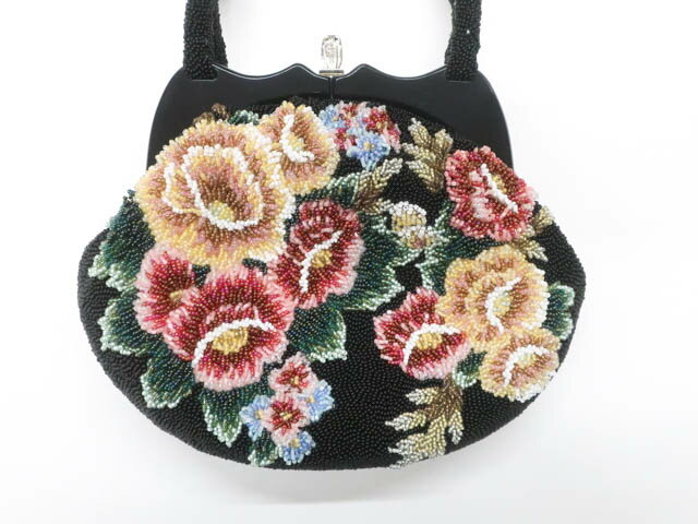 【仕立て上がり 和服 アウトレット リサイクル着物 通販 リサイクル着物 宝の山 逸品 上質 1点物 きもの】リサイクル着物 和装小物 ビーズバッグ 花 r7w10-1741