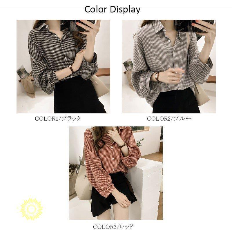 シャツ ブラウス レディース トップス 長袖 チェックシャツ ギンガムチェック バルーンスリーブ 秋 冬 ゆったり 大きいサイズ 40代 50代 夏●[カラー] ブラック、ブルー、レッド●[サイズ(単位cm 約)]