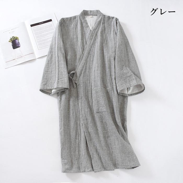 寝巻き メンズ 浴衣 ダブルガーゼ 和風パジャマ ドット柄 水玉柄 ルームウェア お風呂上がり バスローブ ガウン 和風 旅館 温泉 入院 介護 綿 通気性良く涼しい 薄手 部屋着 夏祭り 花火大会 夏