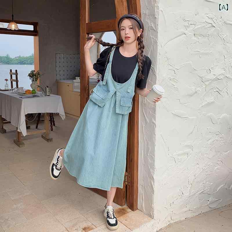 ・素材: デニム・柄: その他・スタイル: 基本・スカート丈: ロング・スカート型: Aライン・ネックライン: ラウンドネック・袖丈: 半袖・袖型: レギュラー・ウエスト: ハイウエスト・ポケット: あり・素材(メイン): ポリエステル90-95%・カラー: ライトブルー・サイズ: S, M, L, XL・スタイル: スウィート, 森ガール・フロント: プルオーバー・種類: ワンピース
