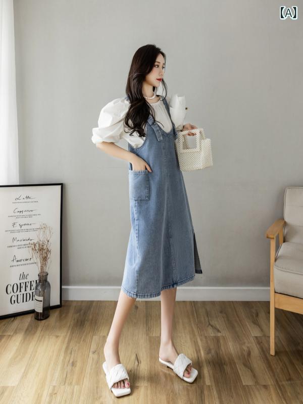 面料: 綿・柄: その他・製法: その他・スタイル: 背带・組み合わせ: シングル・スカート丈: ロング・スカート型: Aライン・ネックライン: Vネック・袖型: パフスリーブ・袖丈: 七分袖・カラー: 浅藍色・サイズ: S, M, L, XL, 2XL, 3XL, 4XL, 5XL・スタイル: 文芸復古, 中国風・主素材含有量: 30%以下・スカート種類: ワンピース