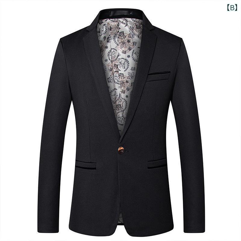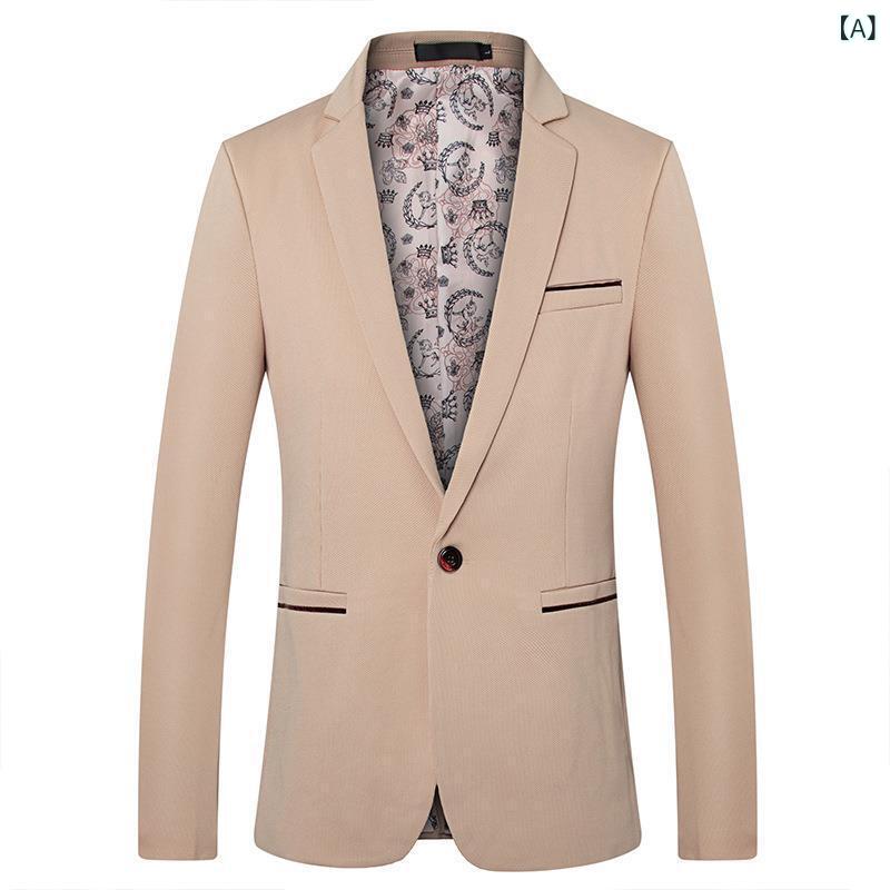 ・項目名: 素材・値: ポリエステル65%・項目名: フィット・値: スリム・項目名: 前立て・値: シングルブレスト、1つボタン・項目名: スタイル・値: 韓国風・項目名: 柄・値: 無地・項目名: 季節・値: オールシーズン・項目名: 生地・値: ポリエステル・項目名: 対象・値: 大人、大柄な方向け、メンズ・項目名: シーン・値: カジュアル・項目名: ベント・値: センターベント・項目名: 加工・値: アイロン不要・項目名: ディテール・値: 配色・項目名: 着丈・値: レギュラー・項目名: 袖丈・値: 長袖・項目名: ポケット・値: フラップポケット・項目名: 裾・値: ラウンド・項目名: 色・値: カーキ、ブラック、スカイブルー、ネイビー、ワインレッド・項目名: サイズ・値: M、L、XL、2XL、3XL、4XL、5XL・項目名: カテゴリ・値: カジュアルスーツ
