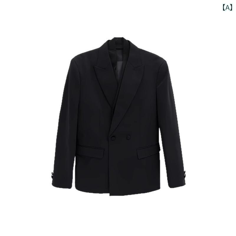 ・カテゴリ: カジュアルスーツ・スタイル: 韓国・対象年齢: 18-24歳、成人・性別: 男性・フィット: スリム・襟のタイプ: スーツ襟・フロント: ダブルブレスト、一つボタン・パターン: 無地・主な素材: ポリエステル100%・裏地: ポリエステル・シーン: 日常・スリット: なし・袖丈: 長袖・ポケット: 箱ポケット・着丈: レギュラー・裾: ストレート・色: ブラック・サイズ: S、M、L、XL、2XL、3XL、4XL、5XL・加工: アイロン不要・その他: 縁飾りステッチ