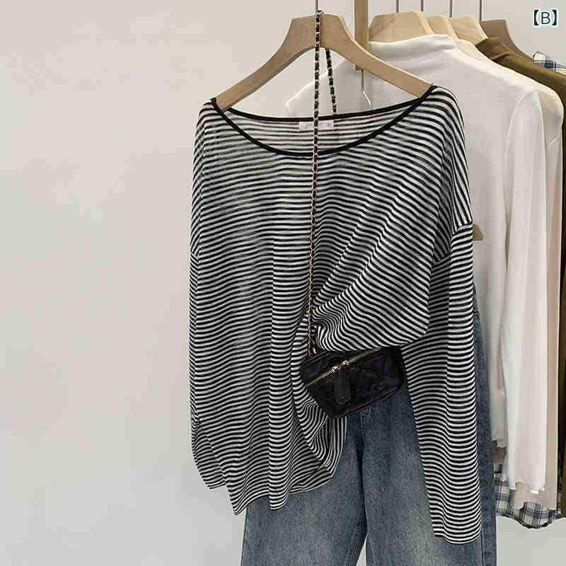 ・主な素材: 粘胶纤维・素材(%): 粘胶繊維80-90、氨纶30以下・柄: ストライプ・スタイル: プルオーバー・袖丈: 長袖・フィット: ゆったり・着丈: ミドル丈(65-80cm)・ネックライン: ラウンドネック・袖のタイプ: レギュラー袖・カラー: コーヒーホワイトストライプ、ブラックホワイトストライプ・サイズ: S、M、L・カテゴリー: Tシャツ・テイスト: 通勤
