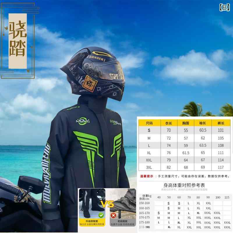 ・スタイル: 現代简约・雨具用途: 骑行雨衣・适用对象: 成人・适用人数: 1人・雨衣厚薄: 常规・雨衣布料: 牛津布・防水胶层: PU胶・货号: 3201・毛重: 1kg・颜色: 尊贵黒红(上衣+裤子+收纳包+独立鞋套),尊贵黒绿(上衣+裤子+收纳包+独立鞋套),尊贵黒金(上衣+裤子+收纳包+独立鞋套),尊贵黒红(上衣+裤子+收纳包),尊贵黒绿(上衣+裤子+收纳包),尊贵黒金(上衣+裤子+收纳包)・尺寸: S,M,L,XL,XXL,XXXL・产品类别: 雨披