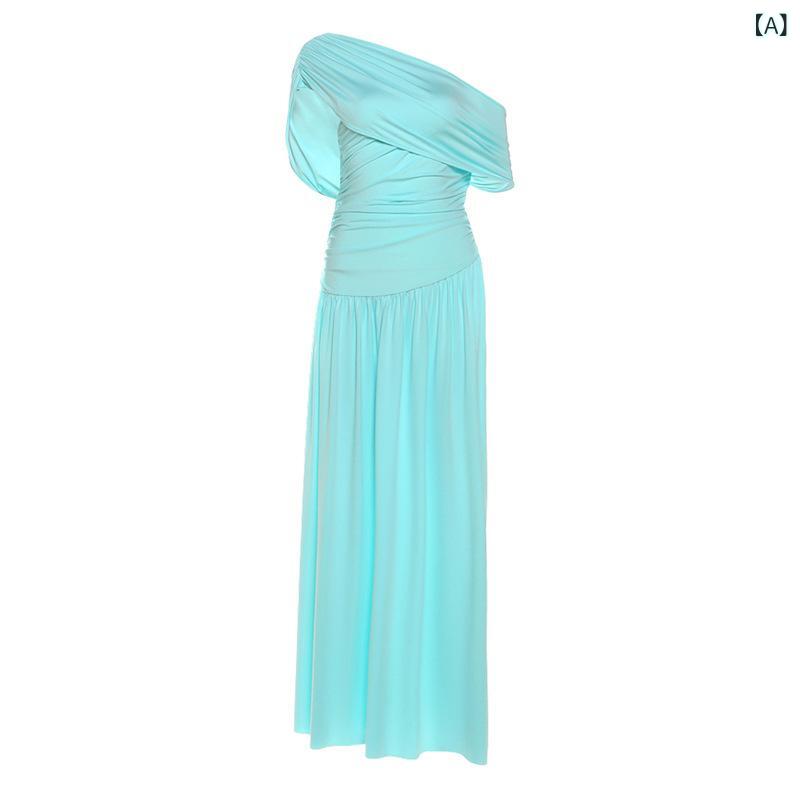 ・工艺: 拼贴/拼接・款式: 一字肩款・组合形式: 单件・裙长: 长裙・裙型: 包臀裙・领型: 斜领・袖型: 无袖・袖长: 无袖・腰型: 高腰・流行元素: 露肩・主な素材: 涤纶(聚酯纤维)・素材(主): 氨纶・カラー: ブルー, カーキ・サイズ: S, M, L・スタイル: 街头潮人・フロント: プルオーバー・素材(主)含有量: 90%-95%・风格: 欧美风・スカートカテゴリ: ワンピース