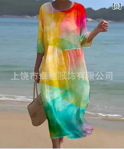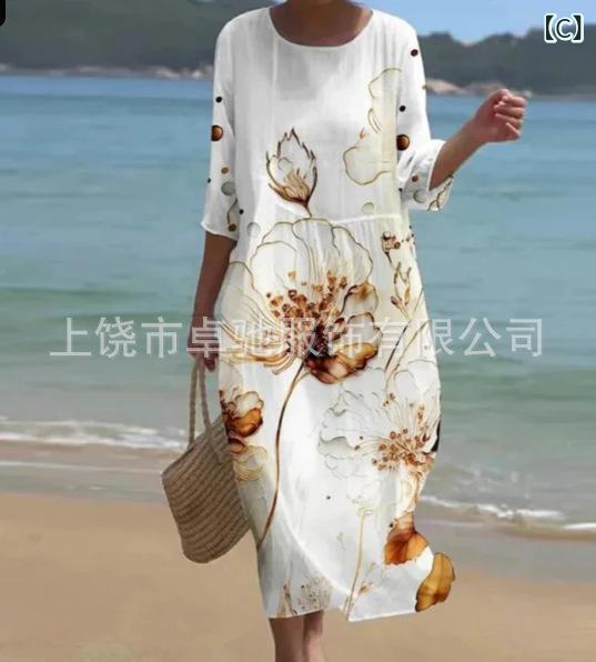 ・工艺: 印花・款式: プルオーバー・組合せ形式: ワンピース・スカート丈: ミモレ丈・スカート型: Aライン・ネックライン: ラウンドネック・袖丈: 半袖・袖型: 通常袖・ウエスト: ゆったり・柄: 花柄・素材: ポリエステル・サイズ: S, M, L, XL, 2XL, 3XL, 4XL, 5XL・スタイル: エレガント, カジュアル・前立て: プルオーバー・メイン素材含有量: 95%以上・スカート種類: ワンピース