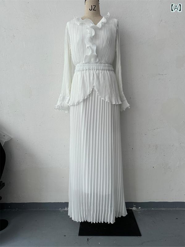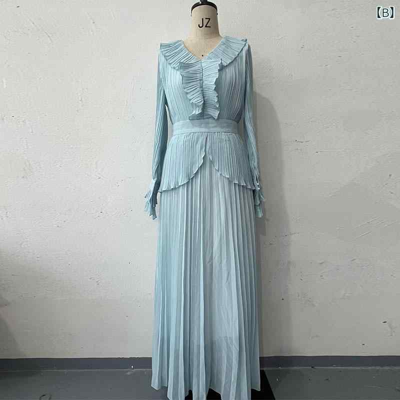 ・工艺: 压皱・款式: 套头・组合形式: 单件・裙长: 长裙・裙型: A字裙・领型: V字领・袖型: 常规袖・袖长: 长袖・腰型: 中腰・流行元素: 无・主面料成分: 涤纶(聚酯纤维)・颜色: 白色, 灰藍色・尺码: S,M,L,XL,XXL,XXXL・风格类型: 街头潮人・门襟: 套头・主面料成分含量: 70%(含)-80%(不含)・风格: 欧美风・裙类别: 连衣裙・跨境风格类型: 个性街头・是否跨境货源: 是