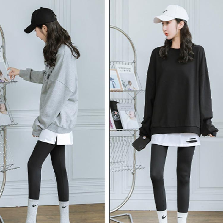フェイクレイヤードデザインで、1枚でも重ね着風のおしゃれな印象にダメージ加工とスリット入りデザイン春夏秋冬使える素材感で、季節を問わず快適に着用可能。
